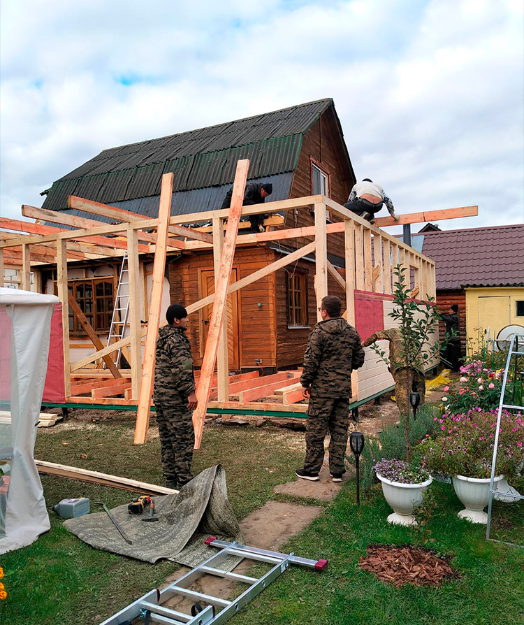 Приветствуем вас на нашем сайте строительной команды! Меня зовут Александр, и я рад представить нашу небольшую, но сплочённую бригаду. Мы занимаемся ремонтом крыш, а также возводим пристройки, веранды и террасы, выполняем фасадные работы в Московской области и Москве. Наша команда состоит из единомышленников с опытом работы от 5 лет, и мы готовы предложить конкурентоспособные цены, сохраняя при этом индивидуальный подход и высокое качество.